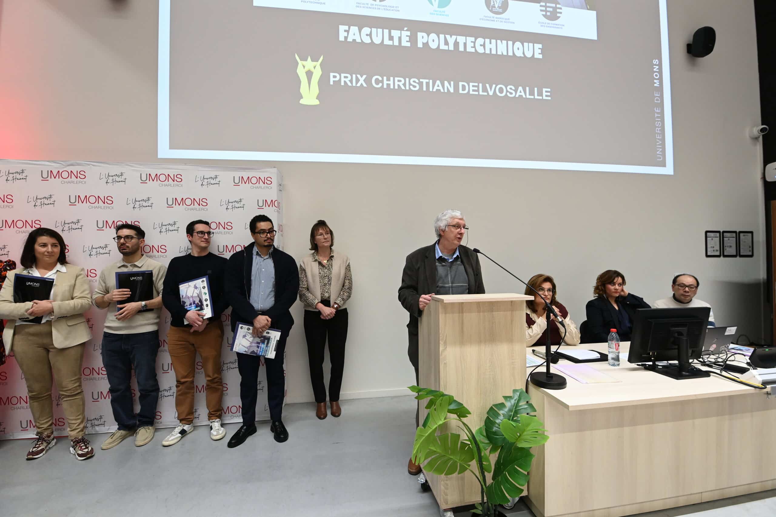 La soirée a également permis la remise du prix de la qualité pour la Faculté Polytechnique baptisé prix « Christian Delvosalle ». Il distingue le diplômé qui s’est fait remarquer par l’originalité et la qualité de son travail de fin d’études Il s’agit, cette année, de Madame Daphné HOUDART pour son TFE intitulé : « L’analyse fonctionnelle comme démarche structurante. Cas d’un logiciel de gestion des événements indésirables en milieu hospitalier »