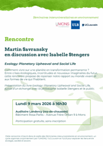 L’École des Sciences Humaines et Sociales de l’UMONS, à travers l’Institut SOCI&TER (Sociétés, Environnements, Territoires), vous invite à la prochaine séance des séminaires interuniversitaires en environnement, coordonnés par Mihnea Tănăsescu (FNRS).