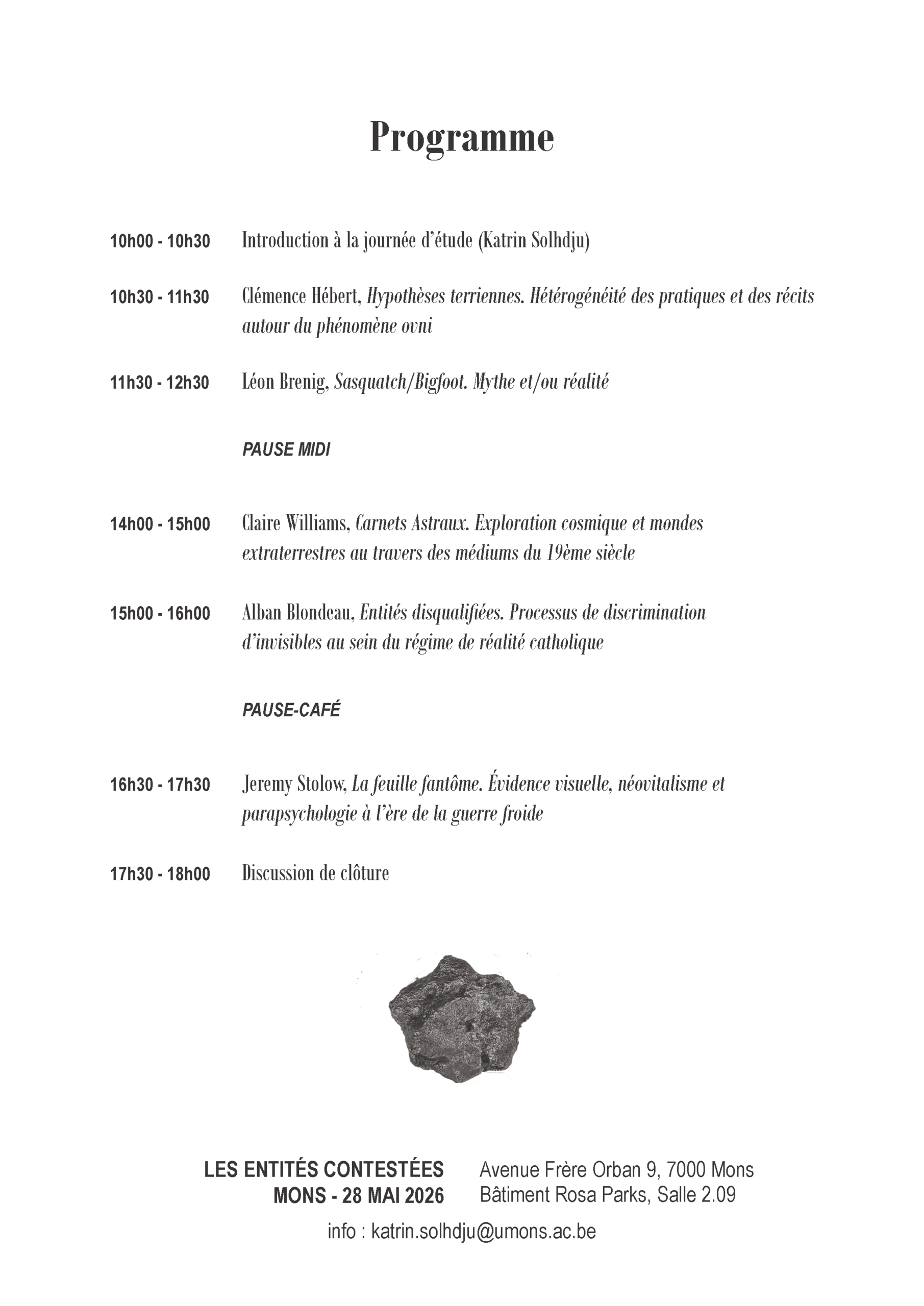 • Lieu : Avenue Frère Orban 9, 7000 Mons (Bâtiment Rosa Parks, salle 2.09, deuxième étage)